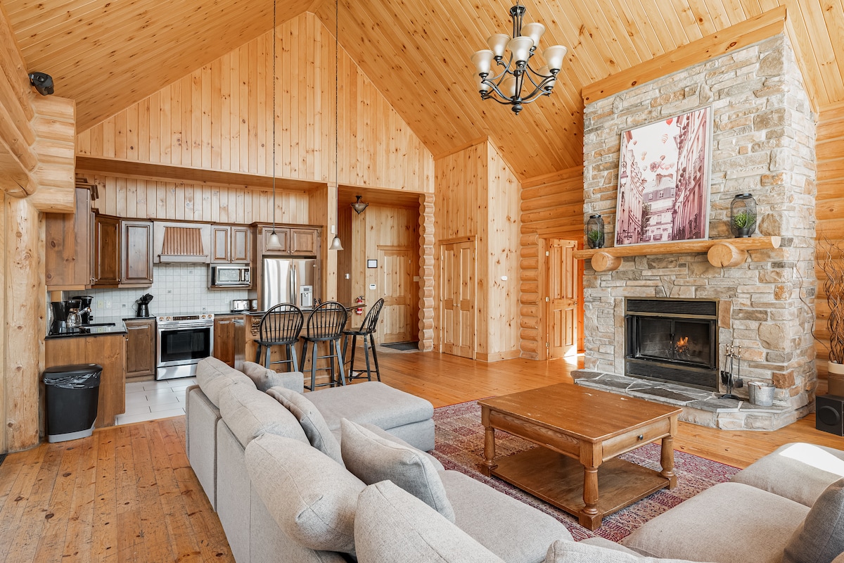 FIDDLER LAKE RESORT – DEER 69 Enjoy a delightful stay at Deer 69, a spacious 5-bedroom log home with 3 sofa beds, that can accommodate up to 16 guests. This splendid chalet is perfect for larger groups. Deer 69 is a two-storey chalet with a large living area, featuring grand windows overlooking the forest, a cathedral ceiling and a wood-burning fireplace. On the main floor, there is also a fully equipped kitchen, a full bathroom and a dining area. The master bedroom on this floor has a king bed and an adjoining bathroom and the guest bedroom has a queen bed. On the lower level, there are three additional bedrooms, two with two single beds and another with a double bed and a full bathroom. In the large living area on this floor, there is a pool table and three sofa beds (bedding included). The outdoor space of Deer 69 features a large balcony with patio furniture and a BBQ available all year around. Enjoy a private hot tub in the backyard and the firepit surrounded by Adirondack chairs. Other amenities include a washer and dryer, satellite TV, Wi-Fi and an electric vehicle charging station. Property features: • 5 bedrooms - Bedroom 1: King bed - Bedroom 2: Queen bed - Bedroom 3: 2 single beds - Bedroom 4: 2 single beds - Bedroom 5: Double bed • 3 sofa beds • 3 bathrooms • 1 wood burning stone fireplace • A hot tub • A pool table • 2770 square feet • 16 guests maximum Important Notice – No Refunds for Power or Septic Issues Please note that no refunds will be provided in the event of power outages or septic system issues during your stay. In case of extreme weather conditions, there is a possibility of temporary power outages. However, please note that this is very rare and not a common occurrence. We just wanted to provide this disclaimer for your awareness. CITQ Registration number 235071, expires: 2026-01-01