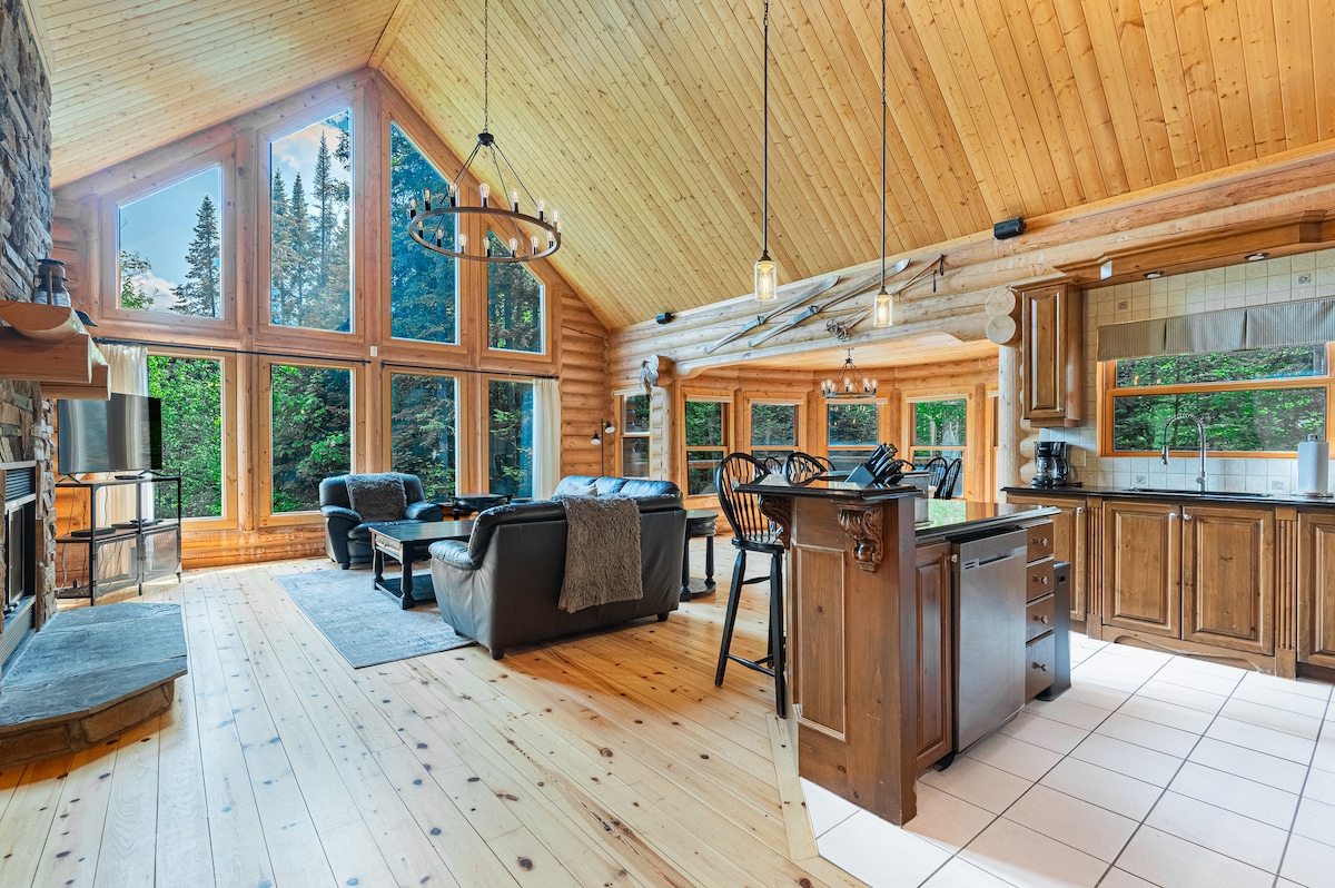 FIDDLER LAKE RESORT – DEER 60 Enjoy a nature-inspired stay at Deer 60, a 4-bedroom log home. Deer 60 is a bright and spacious chalet that can accommodate up to 10 guests. The main floor of Deer 60 features floor to ceiling windows and a cathedral ceiling. There is a large living area with a wood-burning stone fireplace, a fully equipped kitchen and a lovely dining space. The master bedroom located on this floor has a king-sized bed and an adjoining bathroom. This floor has an additional bedroom with a queen bed and another bathroom. The downstairs of this chalet boasts a large living area with a wood-burning fireplace and a pool table, an additional bathroom and two bedrooms, one with a queen bed and another with two single beds. There is also a sofa bed available in the downstairs living room with bedding included. Deer 60 features a 3-season veranda with a hot tub and a large balcony with patio furniture. A BBQ is available for guests all year round. In the backyard, enjoy a stone firepit and Adirondack chairs. Other amenities include a washer and dryer, satellite TV, Wi-Fi and an electric vehicle charging station. Property features: • 4 bedrooms - Bedroom 1: King bed - Bedroom 2: Queen bed - Bedroom 3: Queen bed - Bedroom 4: 2 single beds • 1 sofa bed • 3 bathrooms • 2 wood burning stone fireplaces • A hot tub • A 3-season veranda • A pool table • 2770 square feet • 10 guests maximum CITQ Registration number 234905, expires: 2026-06-30